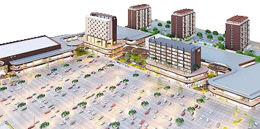 Se construirá e inaugurará la primera parte de la plaza comercial (20,000 m²) y el hotel.